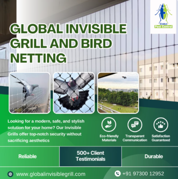 Uncontrolled bird nesting can lead to hygiene issues and property damage. Global Invisible Grill And Bird Netting Services in Sangli provides professionally manufactured Pigeon net systems designed to prevent birds from accessing balconies, terraces, and open ducts. These nets offer a humane and effective solution for maintaining clean and protected surroundings.